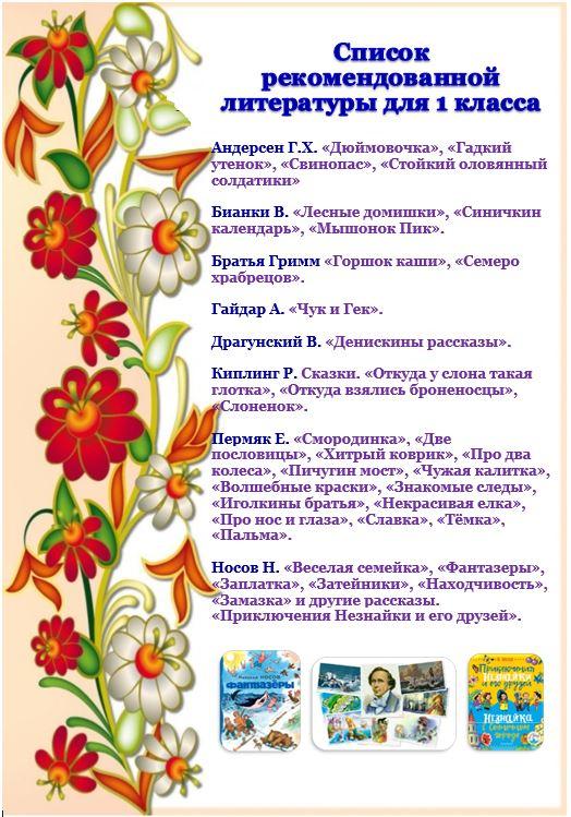 » Список рекомендуемой литературы для чтения 1- 4 классы