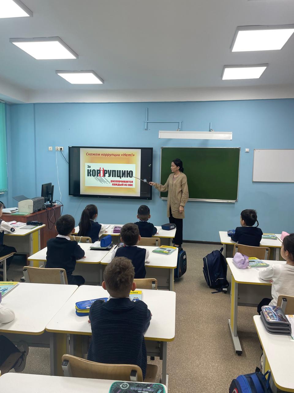13.01.2025 в КГУ «Гимназия N34» проведены классные часы: “КӨМЕК”/ Ценность “Закон и порядок”/ Правовой всеобуч/ “Мы - против коррупции!” - среди 1-11 классов.