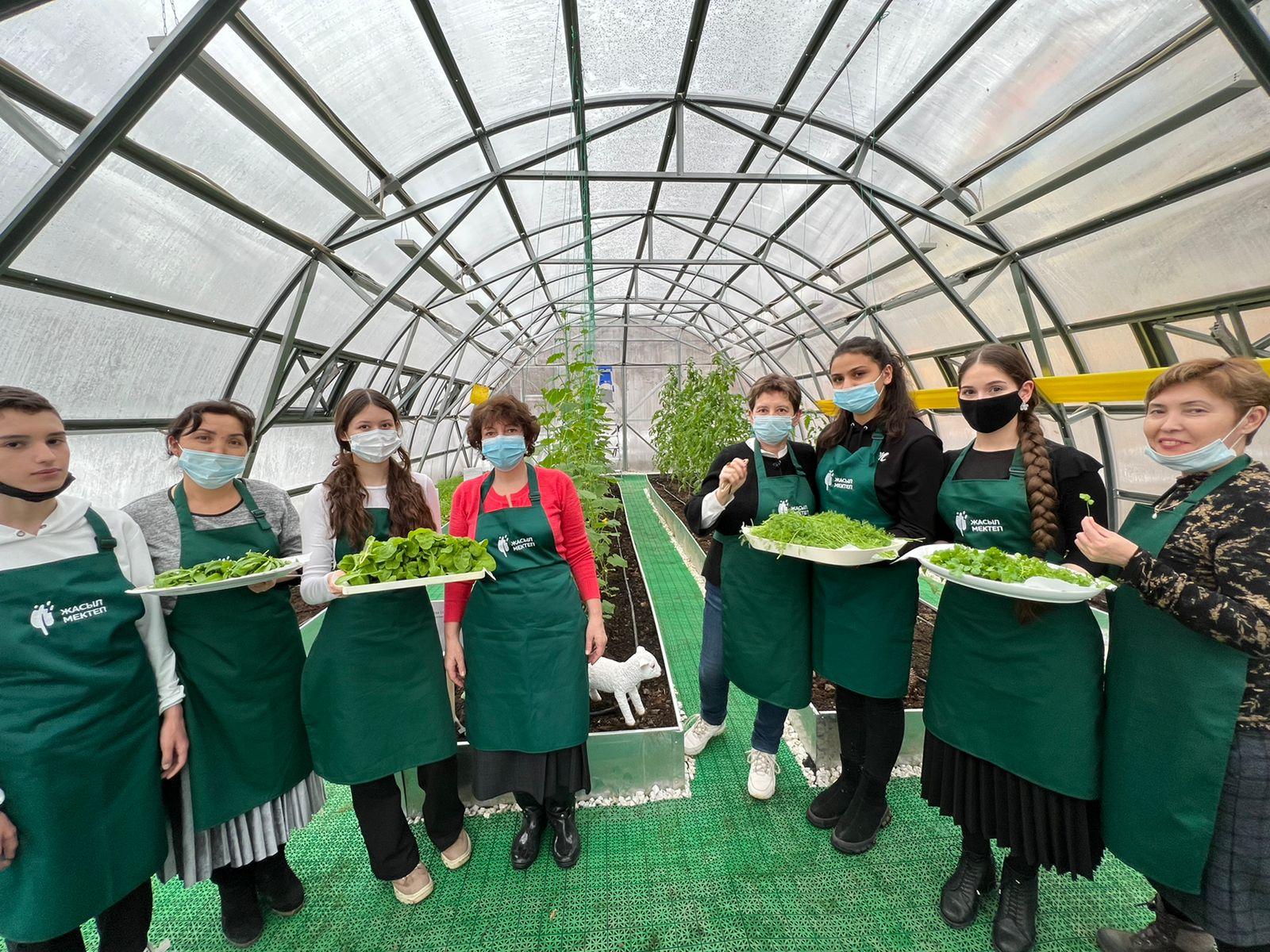 Первый сбор урожая в теплице КГУ "Гимназия 34"