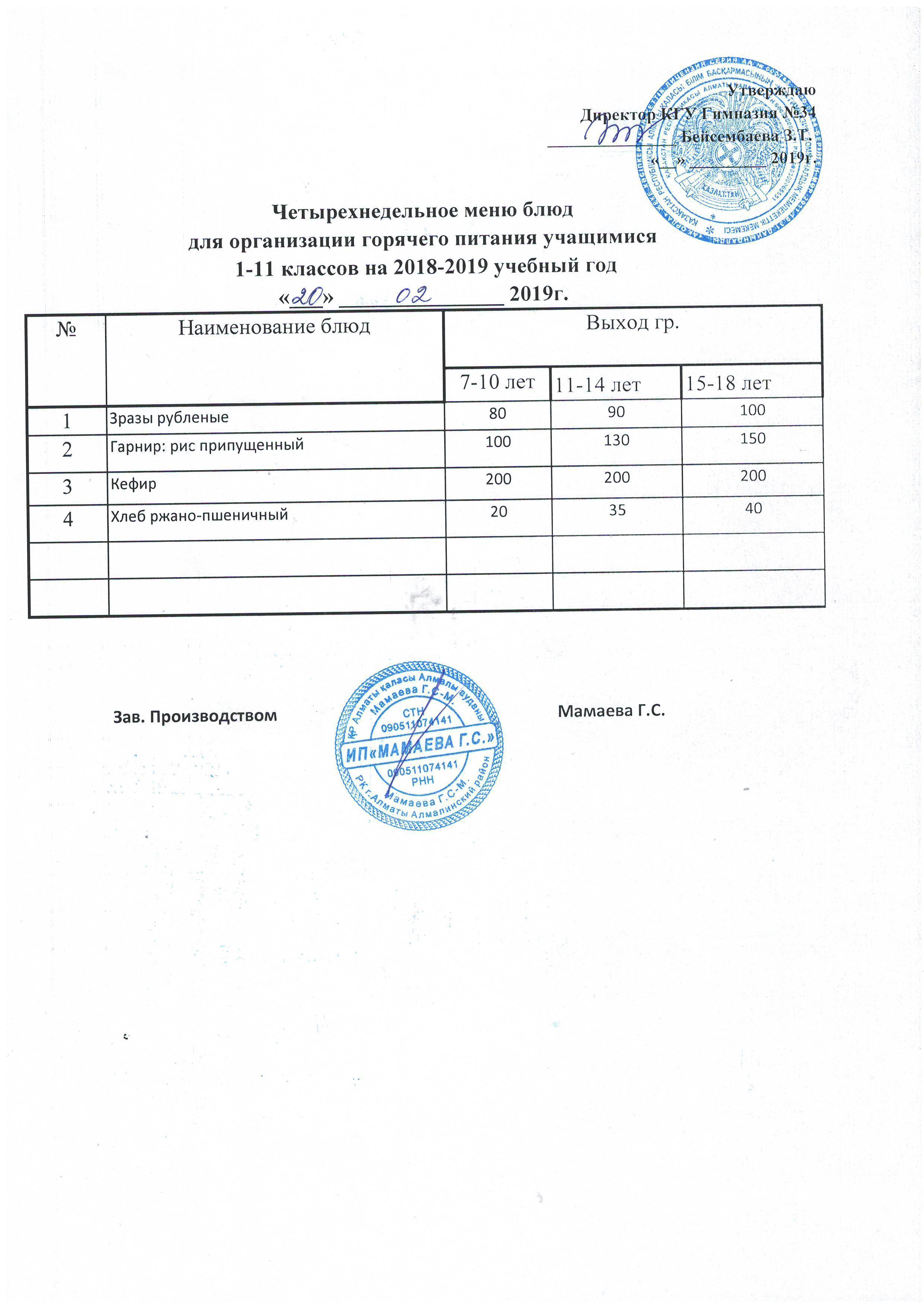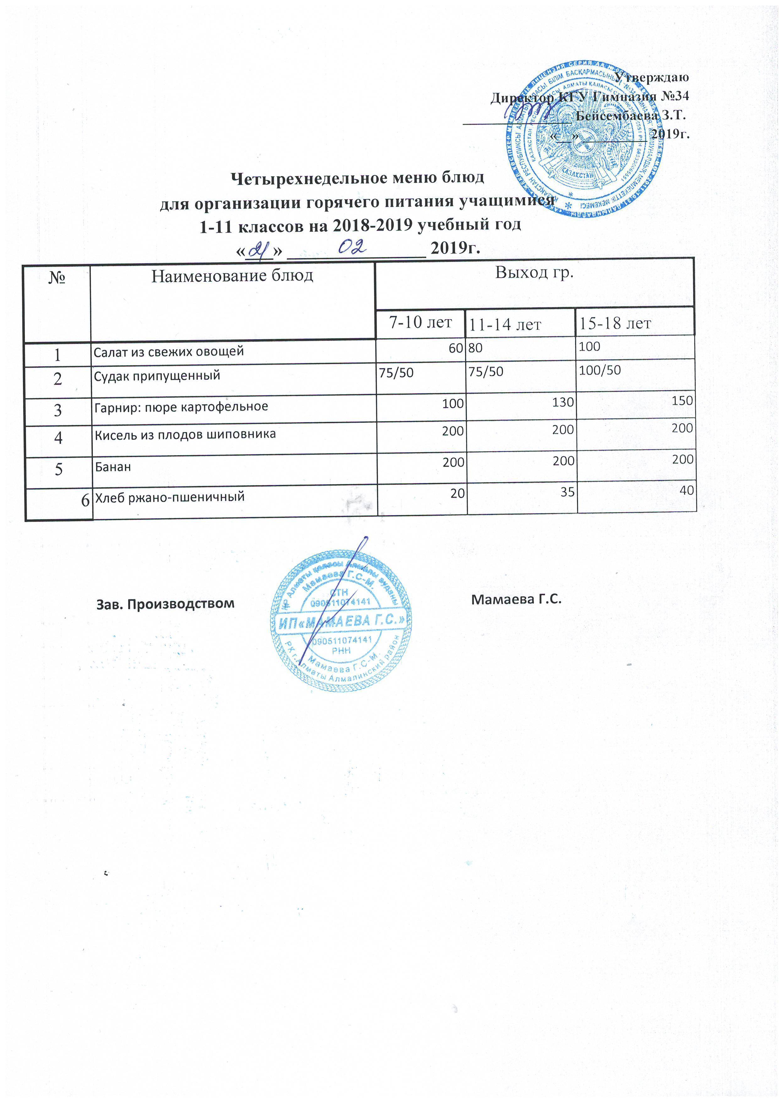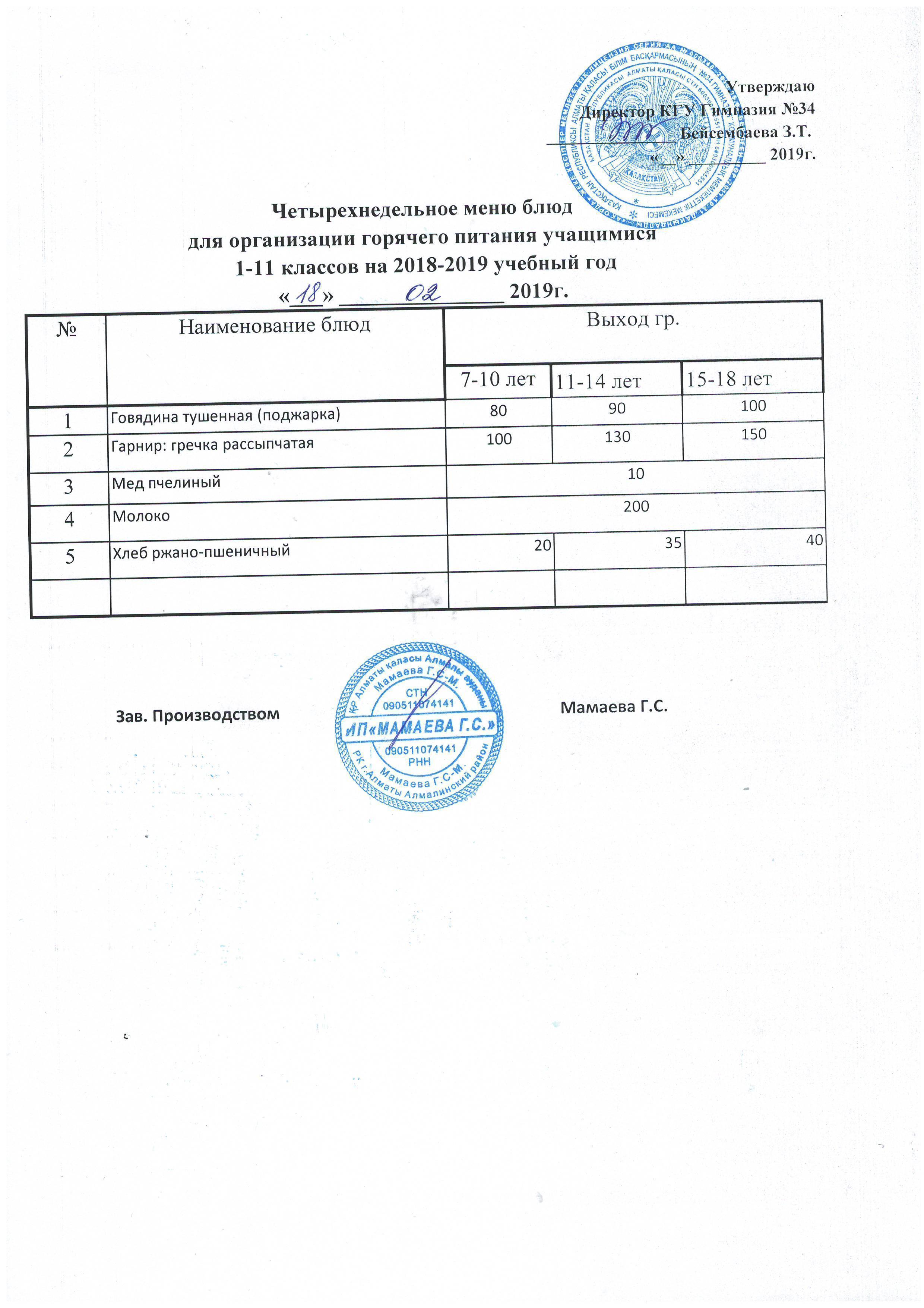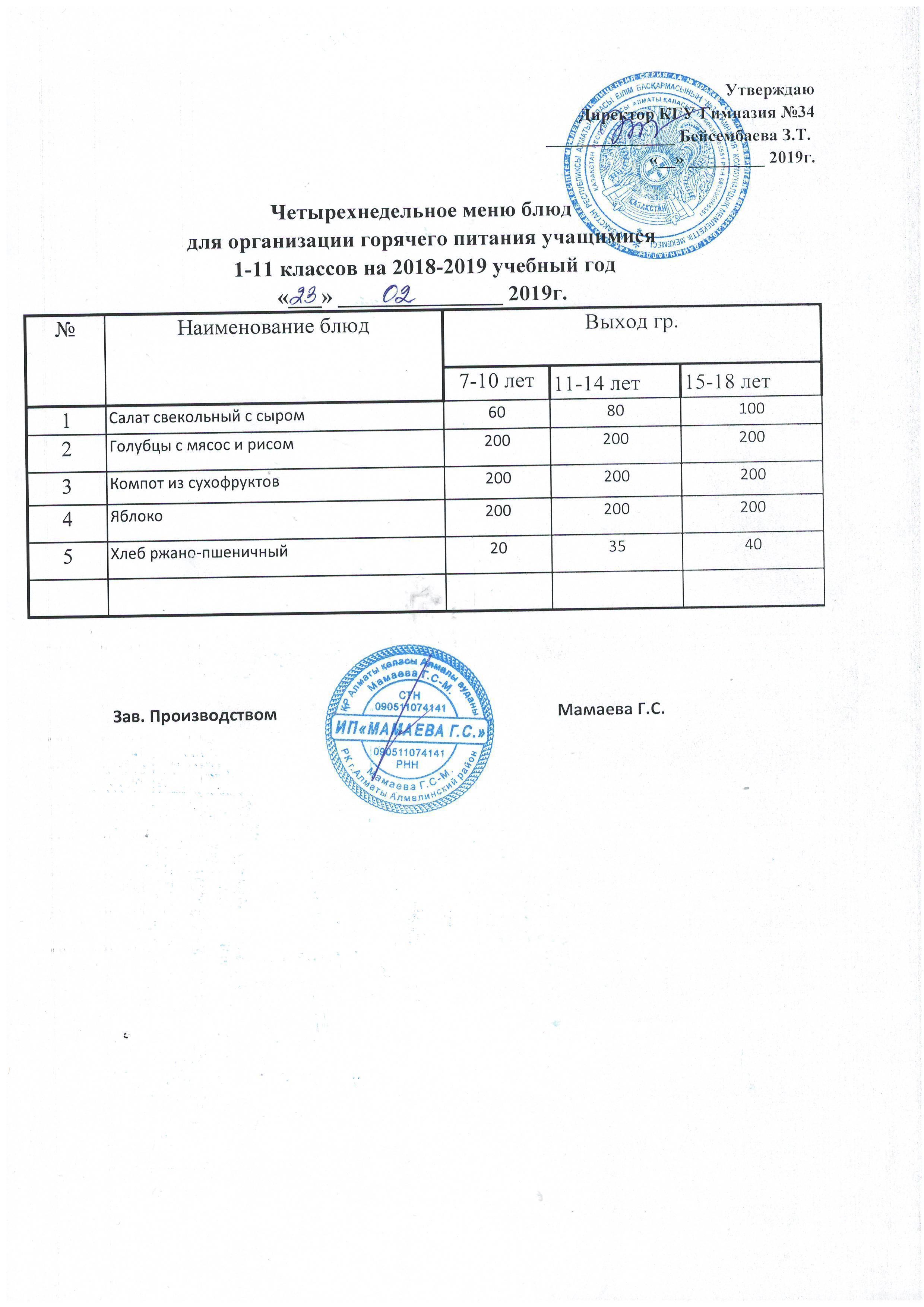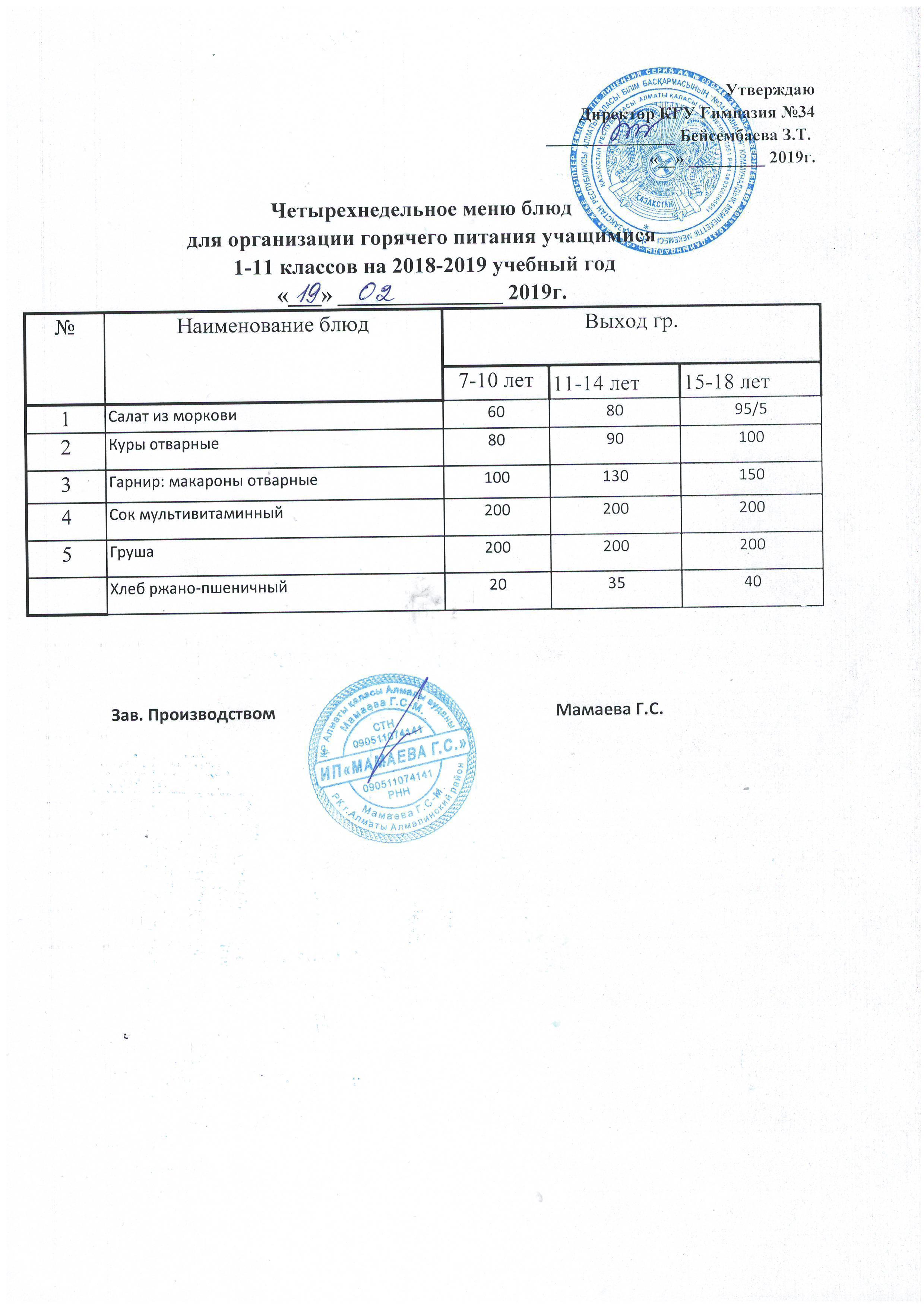 меню на неделю с 18.02.2019г по 23.02.2019г