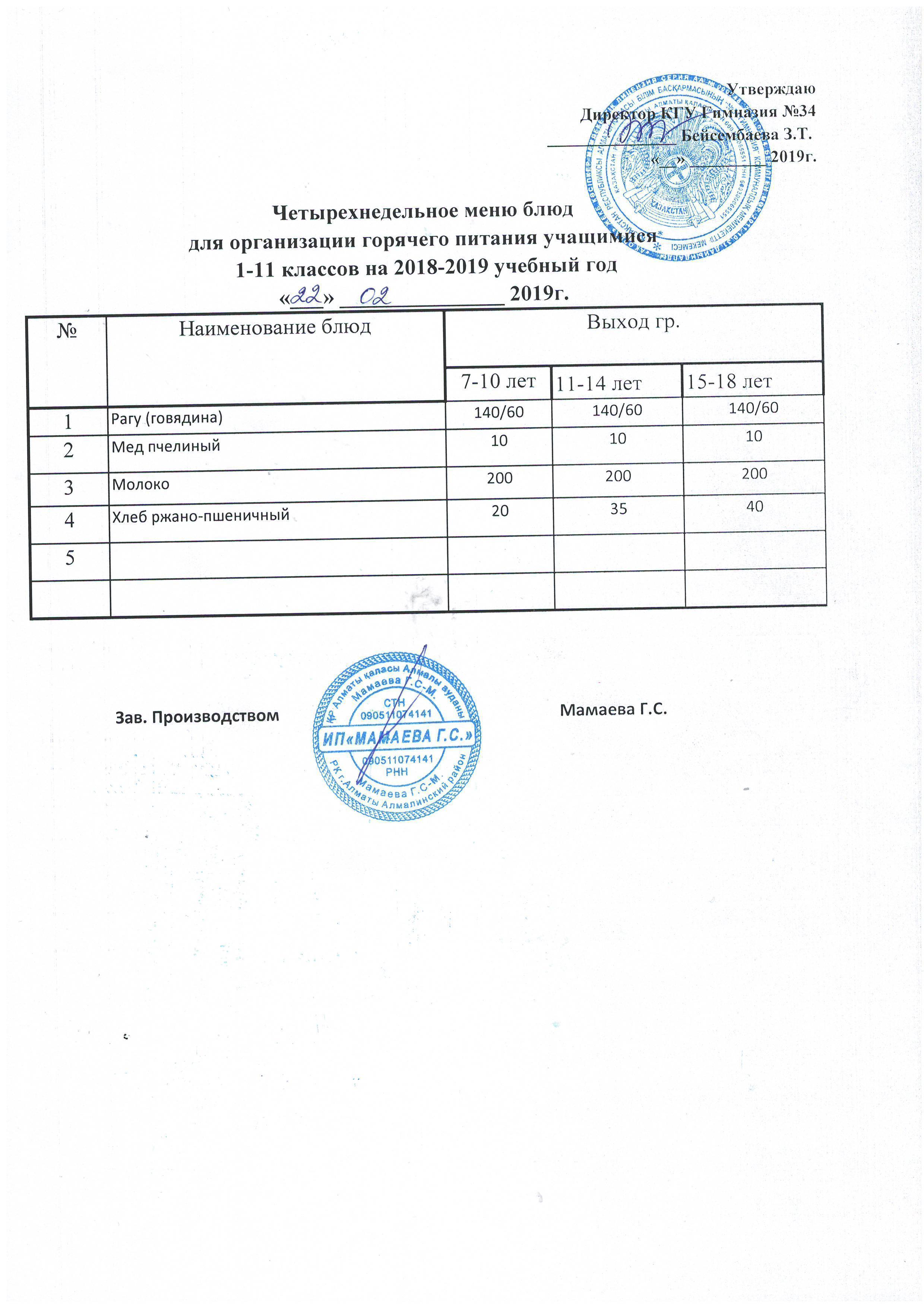 Меню 2019г