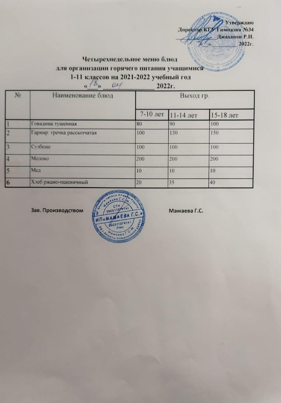 Меню 4 неделя
