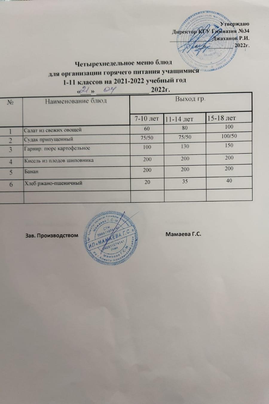 Меню 4 неделя
