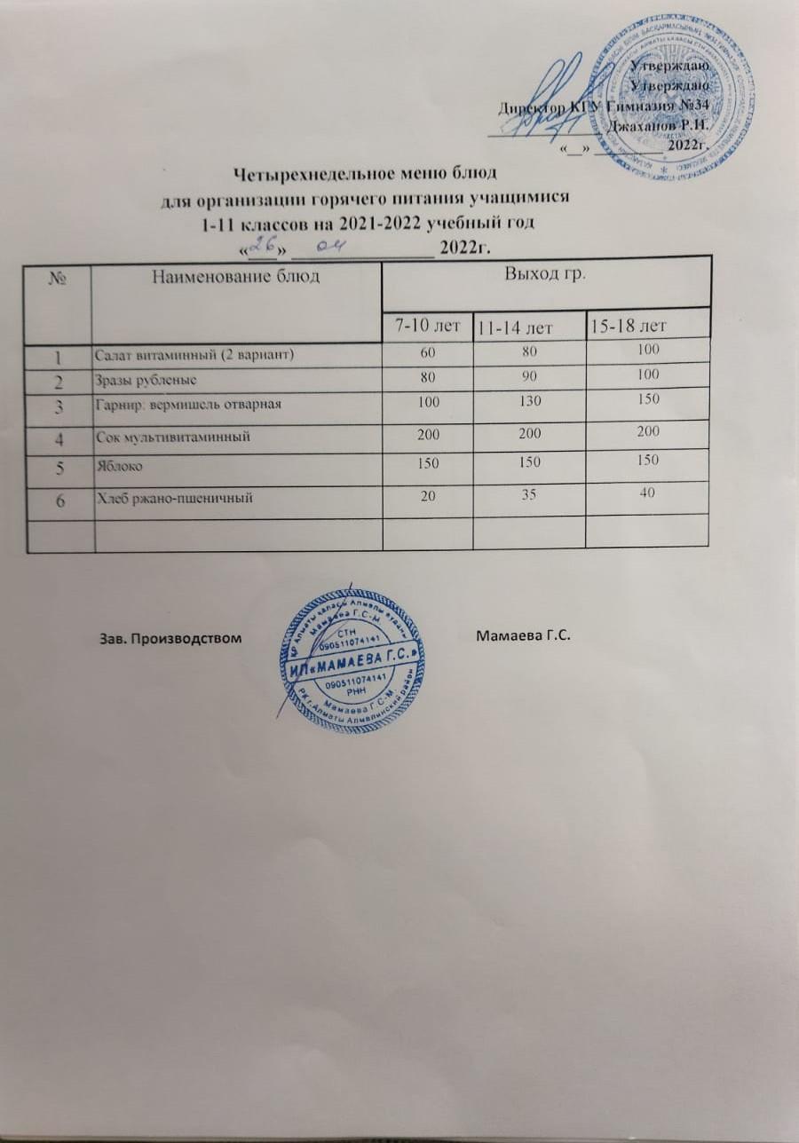 Меню на неделю от 29.04.19г. по 04.05.19г.
