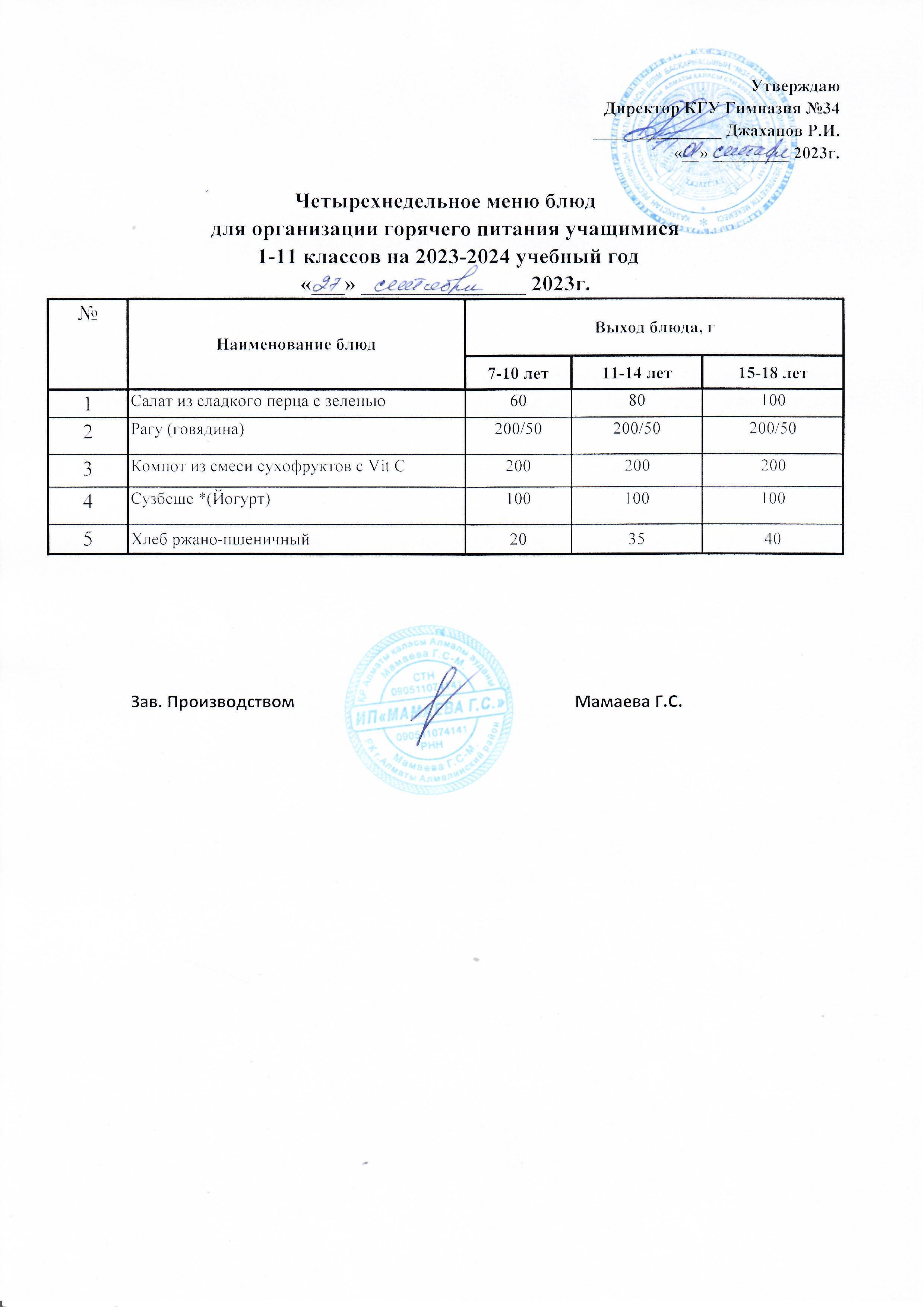 27 сентябрь 2023 0 1 2 3 4 5 Четырехнедельное меню блюд для организации горячего питания учащимися 1-11 классов